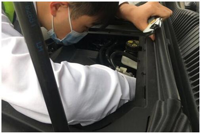“真是沒想到,交投四環線高速公路的收費員還會修車啊!由衷地感謝你們!”, 11月10日中午,一輛小轎車緩緩駛入徐家堡收費站出口24號道,在簡單了解情況后,當班收費員立刻向班長尹祚銘匯報情況,詢問后得知司機剛從沌口收費站上高速,結果沒走幾公里車輛就報故障了,并且引擎蓋內嗡嗡作響,不得已就近下站尋找修車點。