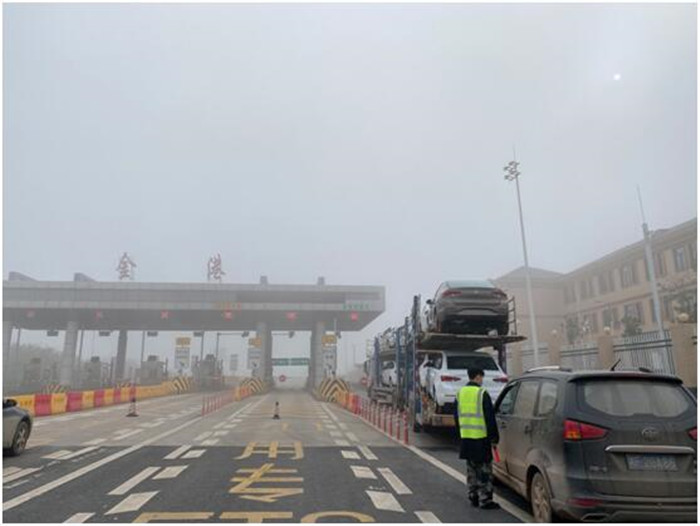二是合理疏導(dǎo),確保行車安全。大霧封道,收費(fèi)廣場(chǎng)滯留大量車輛,當(dāng)班班長(zhǎng)合理分配人員做好專用ETC車道和混合車道的車輛指引,引導(dǎo)車輛有序稱重、領(lǐng)卡、保障入站口各個(gè)車道的行車安全。