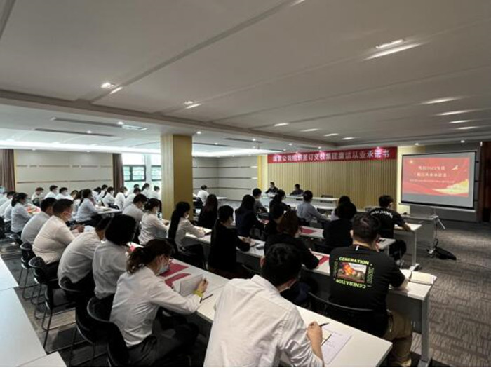 為進一步推進清廉建設(shè),提高黨員干部清廉自律意識,倡導(dǎo)“以清為美、以廉為榮”的良好風(fēng)氣,近日,武漢交投集團高速公路運營管理有限公司全體班子成員、重點崗位人員簽訂了廉潔從業(yè)承諾書,通過公開承諾筑牢廉潔從政、廉潔自律思想防線,讓每一位黨員干部職工對照自身進行了一次廉潔從業(yè)自查,切實履行廉潔自律承諾,筑牢防線、不踩紅線、守住底線。