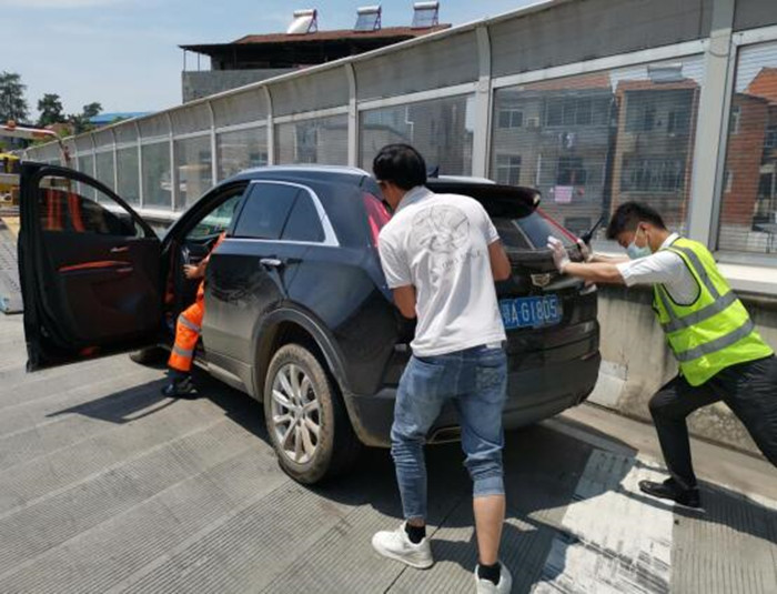 經(jīng)了解得知,該車輛發(fā)動(dòng)機(jī)異常,無法正常啟動(dòng),因車輛停靠位置在下行線匝道口轉(zhuǎn)彎處,易屬大型貨車盲區(qū),為了避免安全事故的發(fā)生以及不造成收費(fèi)廣場(chǎng)擁堵,當(dāng)班班長(zhǎng)立即組織員工將故障車輛推到外廣場(chǎng)安全區(qū)域,擺放好反光錐后并聯(lián)系附近修車廠工作人員幫忙維修。此時(shí)正值高溫,隨之將司機(jī)師傅帶至便民服務(wù)亭乘涼休息。