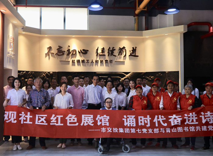 為深入學習貫徹習近平總書記視察湖北重要講話精神,加強基層黨建工作縱深發展,5月11日,武漢交投集團第七黨支部聯合青山圖書館前往青山區青和居社區“青山綠水紅鋼城新時代展館”,開展了以 “觀社區紅色展館 誦時代奮進詩篇”為主題的共建黨建活動,接受了一次生動的紅色教育。集團第七黨支部書記沈海濤、青山區圖書館館長吳紅勤及第七黨支部全體黨員干部職工、青和居社區代表共計40余人參加了本次活動。