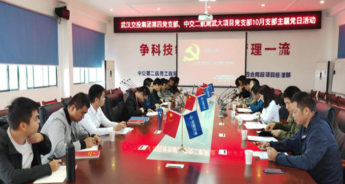 為提高黨員干部的科學管理水平,促進黨員干部勇于擔當、積極作為、拼搏趕超、不斷提升自身的管理水平和綜合素質,10月16日上午武漢交投集團第四黨支部聯合中交二航局武大高速公路4標段黨支部,在項目部會議室開展了以“創建黨員‘責任區’、助力武漢‘軍運會’”為主題的黨日活動。雙方黨員、發展對象及群眾代表積極參加黨日活動。