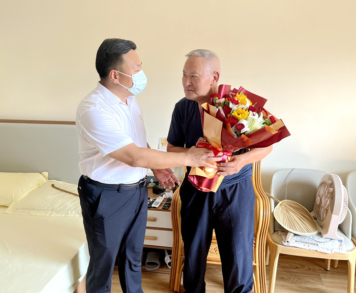 8月1日,武漢交投康養(yǎng)服務(wù)有限公司開展了走訪慰問退伍軍人活動,為入住柴泊湖武漢康養(yǎng)中心的退役軍人們送上了鮮花及節(jié)日的問候和祝福。柴泊湖康養(yǎng)中心入住的退伍軍人們在革命年代和建國后均為黨和國家立下了卓越功勛,他們當中有參加“抗美援朝”保家衛(wèi)國的志愿軍戰(zhàn)士,也有參加“對越自衛(wèi)反擊戰(zhàn)”保衛(wèi)邊疆的連長。此次走訪慰問,讓住在康養(yǎng)中心的退伍軍人切實感受到黨組織的關(guān)懷,進一步增強了基層黨組織的凝聚力、號召力和向心力,同時也激勵年輕一輩學習老一輩革命軍人英勇奉獻的精神。