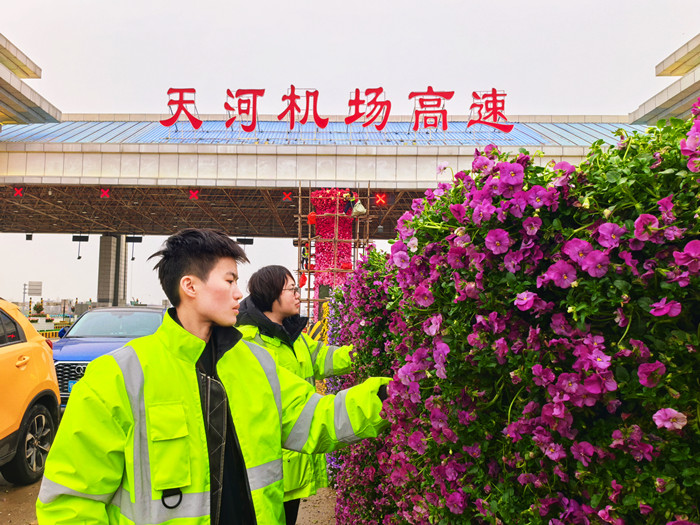 五彩花卉扮靚收費站 向來往司乘發出春天的邀請