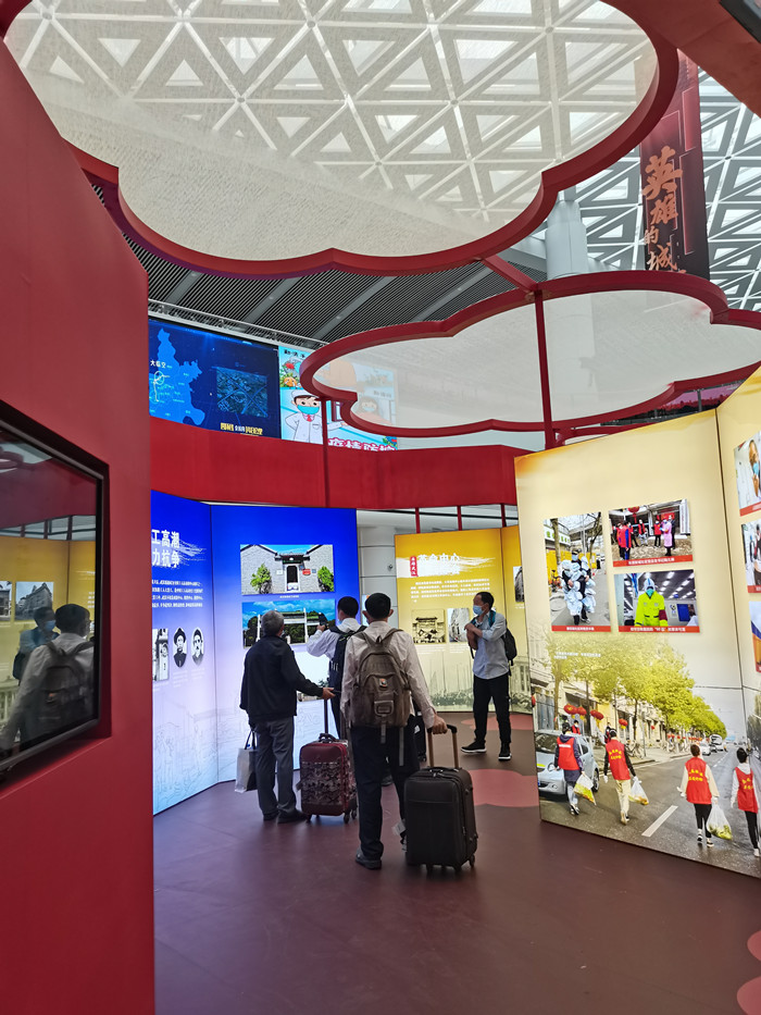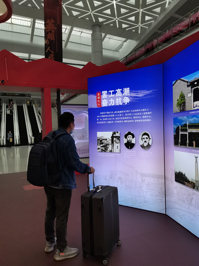 近兩個月的展出中,由交投集團投資建設的天河機場交通中心這一華中地區規模最大、功能最齊全、交通換乘一體化程度最高的城市窗口,變身成為開放式的黨史教育前沿“大課堂”:鄂軍都督府、中共五大會址、武漢中共中央機關舊址、八七會議會址、八路軍武漢辦事處等革命舊址建筑照片真實還原英雄城市的革命底蘊和歷史風貌;精選展示的武漢戰疫代表性圖片著重凸顯2020年武漢從疫情“風暴眼”到經濟“風向標”的華麗轉變;32張感恩海報《謝謝你,為武漢拼過命》全天候滾動播放,拉近距離南來北往的旅客與大武漢之間的距離,進一步將抗疫精神和紅色革命精神充分結合,串聯起一組組既生動又立體、既有深度又有內涵的黨史學習教育鮮活教材,延伸了黨史教育的觸角,增強了黨史教育的吸引力和感召力。