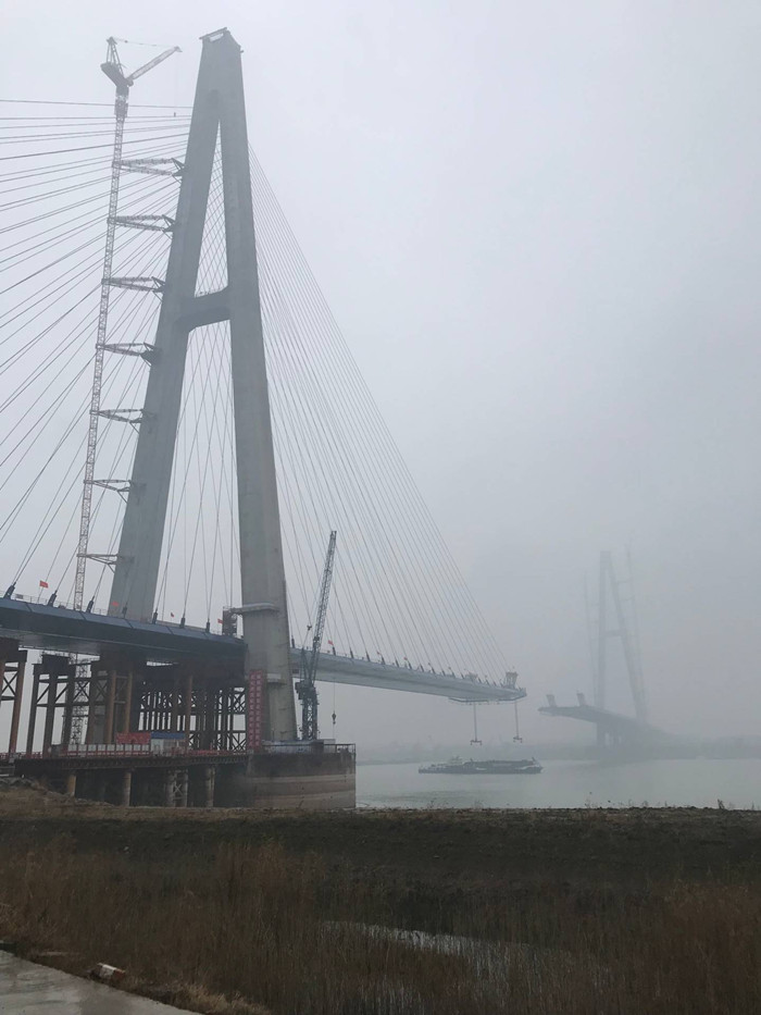 目前,青山長(zhǎng)江大橋項(xiàng)目完成開(kāi)累投資44.89億元,占概算56.03億元的80.11%,主跨鋼箱梁架設(shè)剩余14節(jié)段,預(yù)計(jì)2019年4月全部架設(shè)完畢,全橋合攏。青山長(zhǎng)江大橋公司將不忘初心,砥礪前行,加強(qiáng)質(zhì)量、安全把控,科學(xué)組織,確保項(xiàng)目在2019年10月建成。