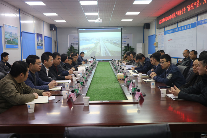 為搶抓施工黃金季節,快速掀起大干快上局面, 3月29日,東四環公司組織召開了2019年4月份生產調度會暨“深挖產能、力保貫通”二季度勞動競賽活動動員大會。武漢交投集團總經理助理、東四環公司總經理王先強、副總經理胡楊出席了會議。東四環公司、中心試驗室、駐地辦、中建總指、施工單位及后方公司領導、青山區協調指揮部相關負責人參加了本次會議,會議由東四環副總監來永峰主持。