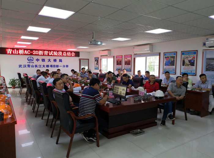 6月19日,青山橋公司組織設計、咨詢、監理、施工及專業分包單位召開了瀝青路面AC-20試驗段施工總結會。會議特邀省公路學會白山云理事長、中南安全環境技術科學研究院有限公司張厚記院長兩位知名專家為項目瀝青路面施工情況進行把關。