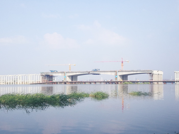 府河特大橋貫穿東西湖區和黃陂區,主跨懸澆段260m,最大單孔跨度120m,是北四環線高速公路跨徑最大的連續剛構橋,也是北四環線施工難度最大、單孔跨度最大的控制性工程。橋梁開建以來,受到社會多方關注,秉持武漢交投集團“建設一流的工程品質、培育一流的文化品位、樹立一流的服務品牌”的“三品”管理理念,嚴格落實“標準更高、要求更嚴、質量更優、安全更好”的“四更”建設要求,北四環公司全體干部職工扎根一線,發揚愿干敢干精神,擔起攻堅重任,不斷創新管理,夯實工程質量,狠抓施工關鍵,克服2017年十年一遇的特大洪水、府河堅硬復雜地質、強風暴雨等一系列不利環境條件的影響,最終實現全橋誤差8mm精確合龍、橋體線形平順、質量可靠的目標任務。