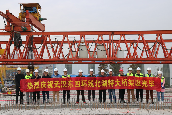 2019年11月21日上午10點(diǎn)58分,隨著架橋機(jī)將北湖特大橋最后一片30米長(zhǎng)、75噸重的預(yù)制T梁精準(zhǔn)拼裝到位,武漢交投集團(tuán)東四環(huán)線高速公路北湖特大橋主橋順利實(shí)現(xiàn)全橋貫通,為東四環(huán)線項(xiàng)目“年底主線貫通”和打贏“三年攻堅(jiān)”計(jì)劃奠定了堅(jiān)實(shí)基礎(chǔ)。