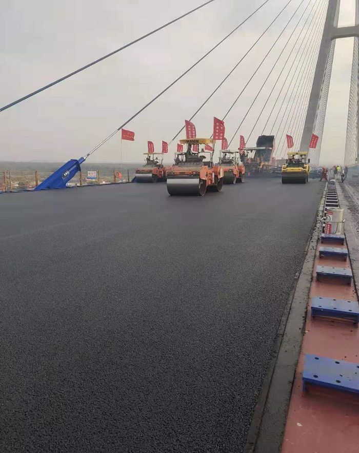 一直以來,鋼橋面瀝青路面就是世界性難題。針對“大跨、超寬、重載”的嚴苛使用條件,通過科研階段的反復試驗和論證,青山長江大橋主航道橋采用了“GA-10澆注式瀝青+ SMA-13高彈改性瀝青”的路面鋪裝設計方案。如何確保各項設計指標的實現,做好每一個環節的施工質量控制則是關鍵。自路面工程開工以來,交投集團青山長江大橋項目公司以工作專班的形式,牽頭組織路面設計、咨詢、監理、施工、檢測等單位,通過精心優選瀝青等原材料、不斷優化混合料配合比、扎實開展試驗段試鋪與總結、嚴格執行施工前置條件檢查、加大施工過程跟蹤檢測、積極運用信息化監控等手段,有力保證了路面工程質量。