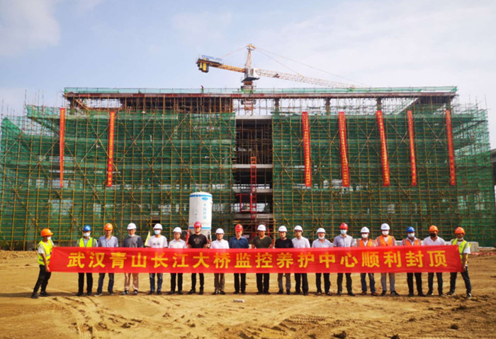 青山橋監(jiān)控養(yǎng)護中心是青山橋安全運營的中樞,擔負著橋梁健康監(jiān)測、反恐監(jiān)控、運營交通安全和橋梁養(yǎng)護管理等職能。中心總建筑面積為6016.16 平方,為五層鋼筋混凝土框架結(jié)構(gòu)。自復(fù)工以來,青山橋公司積極響應(yīng)“堅持兩手抓兩手硬,堅決奪取疫情防控和經(jīng)濟社會發(fā)展雙勝利”的號召,按照集團“目標不變,任務(wù)不減,確保完成2020年度計劃”的要求,克服了用工、材料采購和持續(xù)降雨等困難,強力推進剩余工程。房建工程自4月1日正式展開后,各參建單位和人員抓進度,保安全,控質(zhì)量,歷時90天,結(jié)構(gòu)順利封頂,把因疫情影響的工期搶了回來,為青山橋項目按期運營打下了堅實的基礎(chǔ)。
