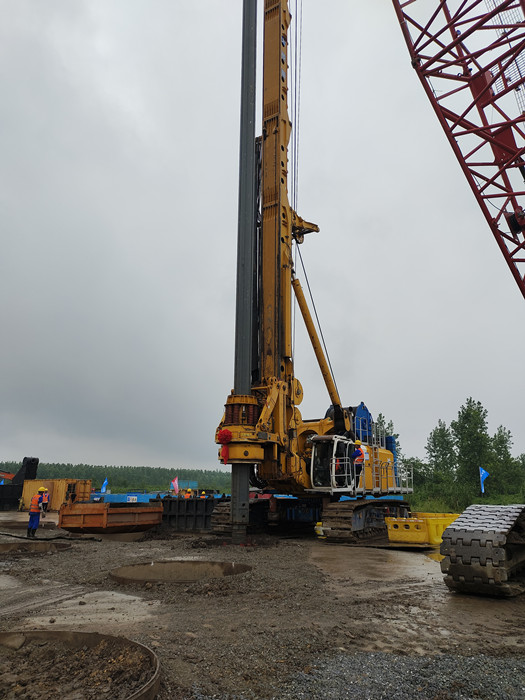 此次開鉆的12號主塔墩樁基礎由72根直徑2.5米的鉆孔灌注樁組成,樁長98米,墩位臨近長江主河槽,鉆孔需穿過40余米厚透水砂層,地質條件復雜,成孔質量風險高,成樁后,采用分布式壓漿工藝進行樁端及樁周后壓漿以提高樁基承載力。為打造平安百年品質工程,項目管理團隊在總結優化試樁成果的基礎上,編制完善樁基“首件”施工方案,組織資深專家對方案進行評審,參建各方認真落實各項建設要求,確保優質高效完成樁基施工。