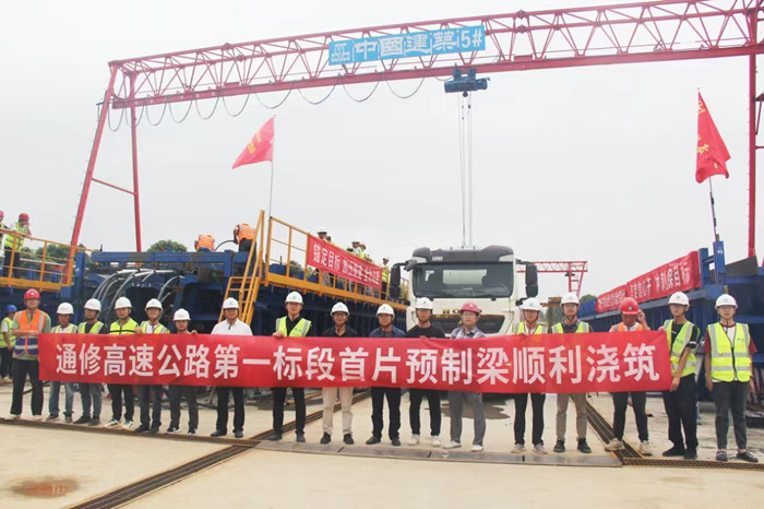 9月13目上午10點18時,通修高速公路首片預制箱梁在通修高速公路第一標段項目部梁場順利澆筑。