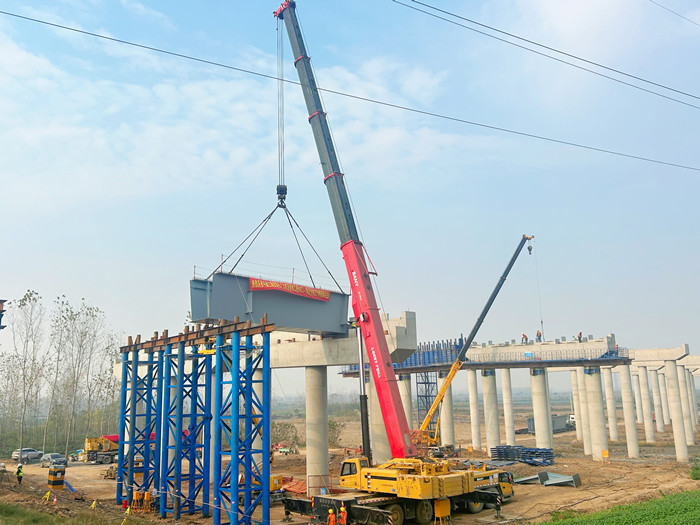 跨四邑公堤大橋是漢南長(zhǎng)江大橋及接線工程的關(guān)鍵性控制工程,全長(zhǎng)70米,鋼箱梁共計(jì)架設(shè)32節(jié),本次吊裝的首節(jié)鋼箱梁長(zhǎng)13.7米,重28.9噸,使用1臺(tái)350噸汽車吊起吊安裝。面對(duì)施工作業(yè)面有限、吊裝跨徑大、運(yùn)輸距離遠(yuǎn)等不利因素,漢南橋公司多次梳理安全風(fēng)險(xiǎn)點(diǎn),督促參建單位對(duì)施工人員進(jìn)行安全、技術(shù)、質(zhì)量交底,全程盯控鋼箱梁制作、運(yùn)輸、拼裝、吊裝等各個(gè)環(huán)節(jié)。在鋼箱梁焊接拼裝過(guò)程中,合理選擇焊接材料,嚴(yán)控焊接質(zhì)量和拼縫寬度,保障梁體的焊接強(qiáng)度和支撐穩(wěn)定。