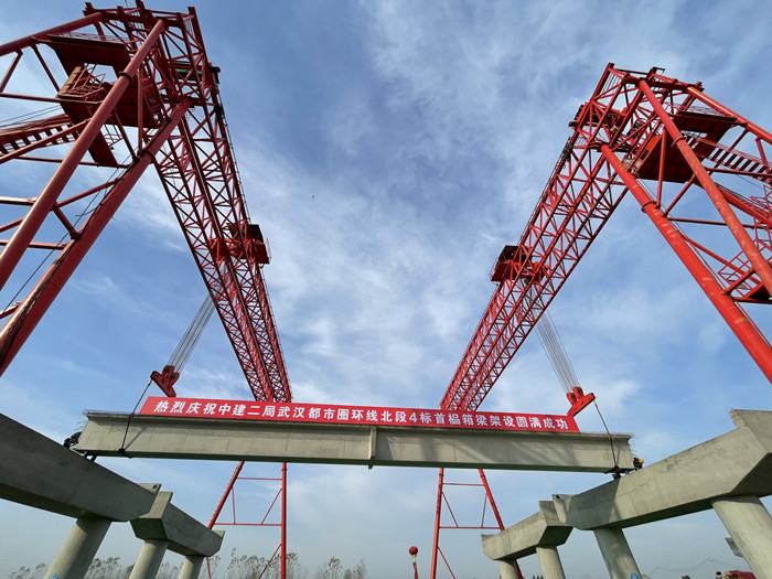 12月6日,由武漢交投集團投資建設的武漢都市圈環線高速公路黃陂至新洲段首榀預制箱梁成功架設在全線最長的新洲西高架橋上,標志著該項目橋梁工程上部結構施工進入新階段,為全線各標段上部結構施工吹響了集結號和沖鋒號。