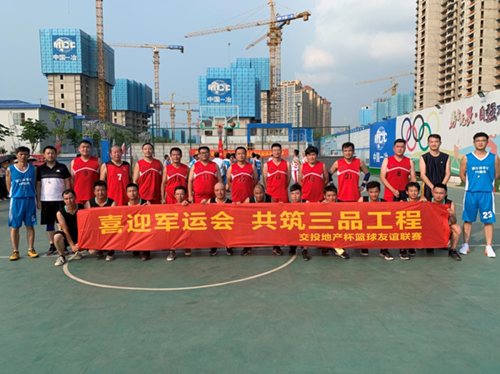 為迎接武漢第七屆世界軍人運(yùn)動會,展示地產(chǎn)公司各在建項(xiàng)目團(tuán)隊(duì)形象,同時(shí)起到全民健身的帶頭作用,7月10日,和縱盛地產(chǎn)公司在青山濱江商務(wù)區(qū)39地塊項(xiàng)目組織各參建單位開展以“喜迎軍運(yùn)會、共筑三品工程”為主題的“交投地產(chǎn)杯”籃球友誼聯(lián)賽活動。此次聯(lián)賽為期15天,共有6支代表隊(duì)參賽。