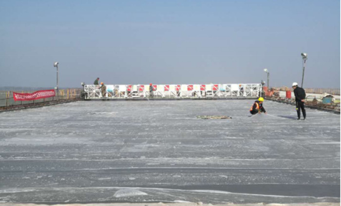 天興洲灘地橋最后一跨完成澆筑后養(yǎng)護(hù)