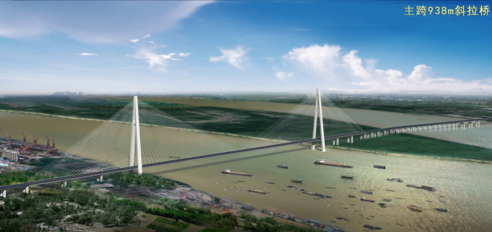 武漢青山長(zhǎng)江大橋是武漢市第十一座長(zhǎng)江大橋,是武漢四環(huán)線東段跨越長(zhǎng)江的控制性工程。路線起點(diǎn)接四環(huán)線東段,在武鋼外貿(mào)碼頭下游的大眾碼頭處跨越長(zhǎng)江,終止于黃陂區(qū)花樓街,接四環(huán)線北段,全線均為橋梁。路線全長(zhǎng)為7.548km,其中長(zhǎng)江大橋4.374km,接線引橋3.174km,主航道橋采用主跨938m雙塔鋼箱及鋼箱結(jié)合梁斜拉橋方案。項(xiàng)目全線采用雙向八車道高速公路標(biāo)準(zhǔn)建設(shè),設(shè)計(jì)速度為100 km /h。全線設(shè)置大橋監(jiān)控管理分中心1處(含養(yǎng)護(hù)工區(qū))。項(xiàng)目批復(fù)概算56.03億元,工期4年,于2015年10月開工,計(jì)劃于2019年10月完工。