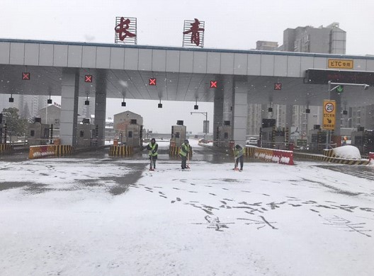 自降雪開始,各收費站的收費員們就輪番上陣,采取不間斷除雪作業法,對收費車道、島頭、收費廣場及院區等重點區域積雪進行清理,任寒風削過他們的頭發、耳朵,雙手卻沒有停過。他們只為了一個目的:避免雪勢積壓,保證道開路凈,為過往司乘提供一個良好行車環境。目前,站口車道基本清理干凈,并且有專職人員盯守,現場疏導車輛,秩序井然。