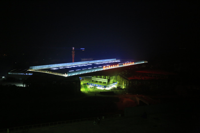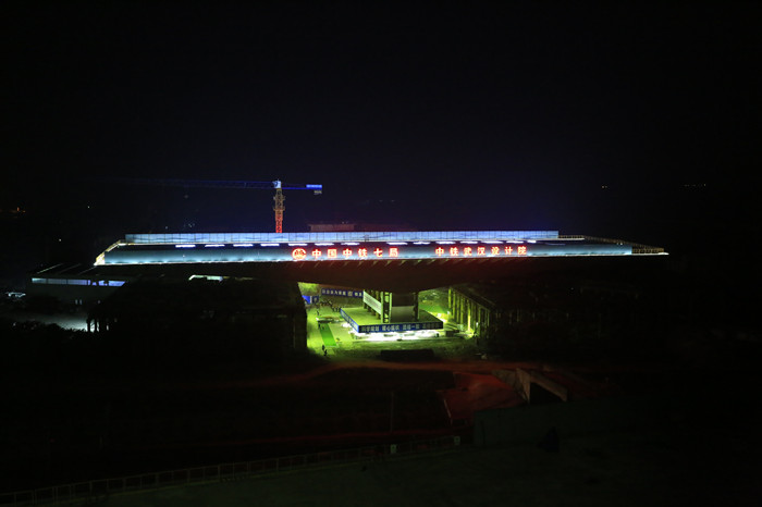 當天00時50分,隨著一聲令下,總長142米、寬42.9米、重3.3萬噸的梁體,在2臺600噸千斤頂及牽引索的拉動下,逆時針旋轉(zhuǎn)87.47度至設(shè)計位置,成功跨越武漢北下行環(huán)發(fā)線、京廣貨線下行2條鐵路線,于2時40分轉(zhuǎn)體精確就位。