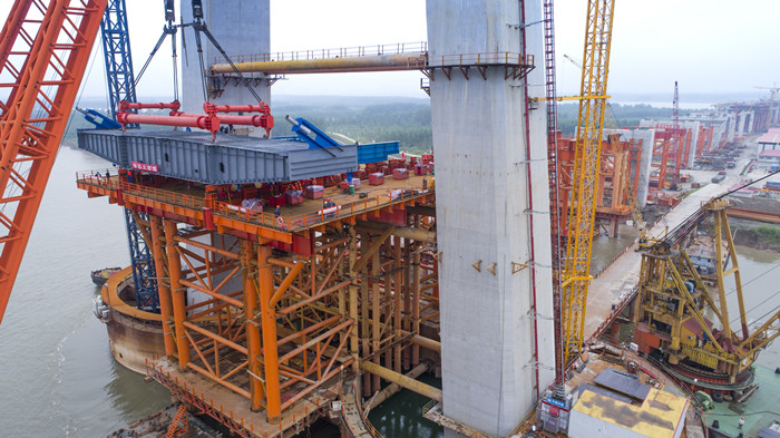 2018 年 8 月 8 日,主橋中跨首片鋼梁架設(shè)成功。