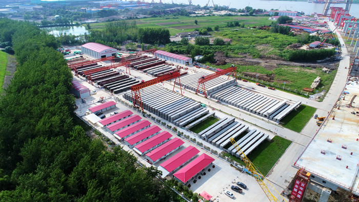 2018年7月,中國施工企業(yè)管理協(xié)會在青山橋南岸預(yù)制梁場舉辦“綠色建造、綠色發(fā)展”觀摩交流會,全國 200 余名綠色環(huán)保工程專家齊聚現(xiàn)場。53畝的標(biāo)準(zhǔn)化T梁預(yù)制場布置有制梁區(qū)、存梁區(qū)、封閉式鋼筋加工車間、辦公及生活區(qū)四大核心區(qū),大面積草坪和植被環(huán)繞,整潔美觀、自然和諧。梁場進(jìn)出口設(shè)置的車輛自動沖洗裝置,有效抑制施工現(xiàn)場揚(yáng)塵。水泥、粉煤灰等粉粒性原材料全部使用專用車輛運(yùn)輸;各類臨時(shí)設(shè)施均采用標(biāo)準(zhǔn)化、可拆遷、可回收材料,減少資源浪費(fèi)�;娱_挖采用鋼板樁圍堰,減少土方開挖和回填量,保護(hù)用地。大體積混凝土采用冷卻水管循環(huán)水,預(yù)制 T 梁全自動循環(huán)水噴養(yǎng)護(hù);梁場隨處可見的太陽能路燈、空氣能熱水器等清潔能源;用多層鋼骨架活動板房建設(shè)的臨時(shí)辦公和生活用房,處處踐行節(jié)能環(huán)保。