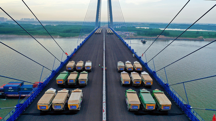 青山橋位于天興洲長江大橋和陽邏長江大橋之間,是武漢四環(huán)線東段跨越長江的控制性工程。青山橋及四環(huán)線全線貫通后,將有效串聯(lián)六大新城組群,形成內(nèi)聯(lián)外通及進(jìn)出轉(zhuǎn)換的物流便捷大通道,分流三環(huán)線的貨運(yùn)壓力,進(jìn)一步完善武漢“環(huán)線+射線”路網(wǎng)結(jié)構(gòu),緩解城區(qū)交通擁堵。