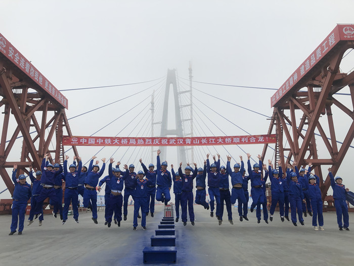 2019年5月14日,青山橋建設(shè)者們歡慶大橋合龍。