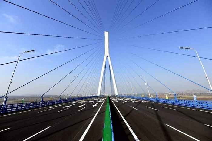 青山長江大橋主橋位于武漢最大碼頭武鋼外貿碼頭和武漢最大錨地王家屋錨地之間,是長江武漢段黃金航道。 為滿足大橋荷載重、車流量大、航道寬等需求,大橋設計為主橋鋼梁無下橫梁支撐,依靠斜拉索的拉力處于全懸浮狀態。這種設計,使大橋在地震等環境下可以像“蕩秋千”一樣蕩起來,可以很好適應運營工況及溫差、大風、地震等外力作用下的位移變形,避免結構共振,起到抗震消能的作用。
