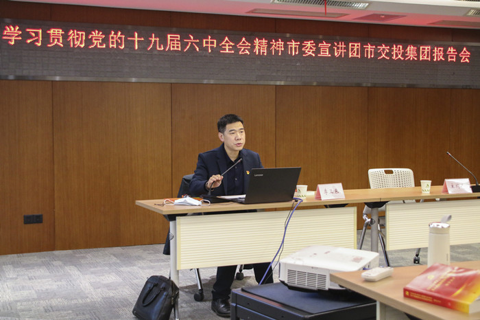 12月15日,學習貫徹黨的十九屆六中全會精神市委宣講團走進武漢交投集團,市委宣講團成員、江漢大學副校長、黨委宣傳部部長、教授李衛東作宣講報告。集團領導班子成員、全體黨員近百人參加了報告會。
