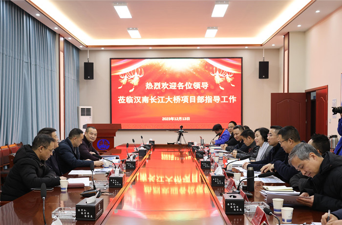 2023年12月13日,湖北省總工會(huì)黨組成員、副主席馮家欣一行到武漢都市圈環(huán)線高速公路漢南長(zhǎng)江大橋及接線工程項(xiàng)目現(xiàn)場(chǎng),調(diào)研指導(dǎo)省級(jí)引領(lǐng)性勞動(dòng)競(jìng)賽開展情況。武漢城市發(fā)展集團(tuán)黨委副書記、董事朱俊華,武漢城發(fā)集團(tuán)總經(jīng)理助理、武漢交投集團(tuán)黨委書記、董事長(zhǎng)胡奇文,武漢城發(fā)集團(tuán)副總經(jīng)濟(jì)師、婦聯(lián)主席、工會(huì)副主席高萍,武漢交投集團(tuán)副總經(jīng)理鄭群華陪同調(diào)研。
