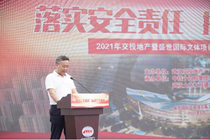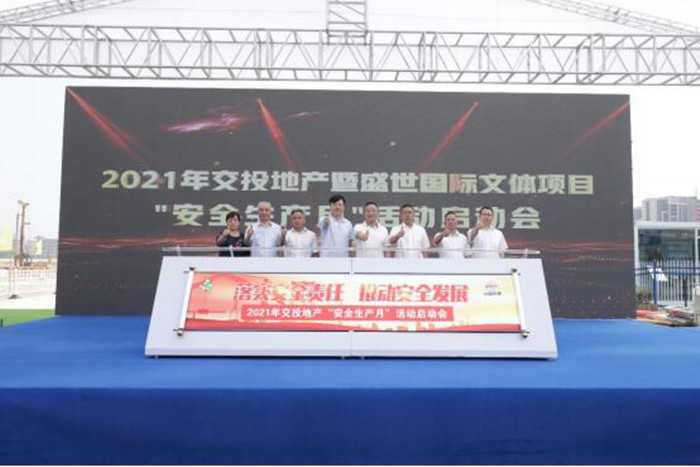 今年6月是全國第20個“安全生產(chǎn)月”,為深入貫徹落實(shí)省、市和武漢交投集團(tuán)關(guān)于安全生產(chǎn)工作的相關(guān)要求,全面落實(shí)企業(yè)安全生產(chǎn)主體責(zé)任,營造“人人講安全、人人要安全、人人會安全”的濃厚氛圍,6月2日上午,武漢交投集團(tuán)和縱盛地產(chǎn)公司在盛世國際文體項(xiàng)目施工現(xiàn)場舉辦了2021年“安全生產(chǎn)月”活動啟動會。黃陂區(qū)橫店街道人大主任羅學(xué)峰、交投集團(tuán)副總經(jīng)理文兵、交投集團(tuán)安全部部長汪幫平、交投集團(tuán)和縱盛地產(chǎn)公司總經(jīng)理尹水章等領(lǐng)導(dǎo)蒞臨指導(dǎo),地產(chǎn)公司各部門負(fù)責(zé)人、各項(xiàng)目辦負(fù)責(zé)人、各項(xiàng)目施工、監(jiān)理單位代表參加了啟動會。