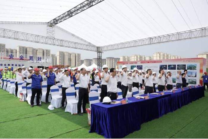活動中,施工、監(jiān)理單位代表作表態(tài)發(fā)言,全體參會人員進(jìn)行了集體安全宣誓,集中觀看了應(yīng)急演練視頻,并在盛世國際文體項(xiàng)目實(shí)體安全體驗(yàn)區(qū)進(jìn)行了現(xiàn)場觀摩。